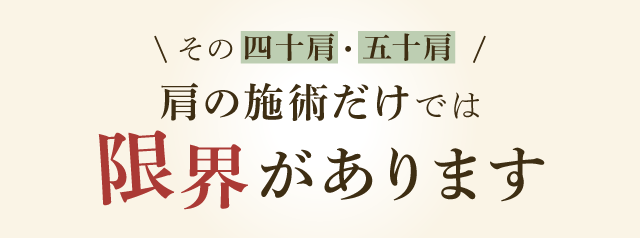 四十肩・五十肩を根本改善するためには、肩のマッサージだけでは不十分です。